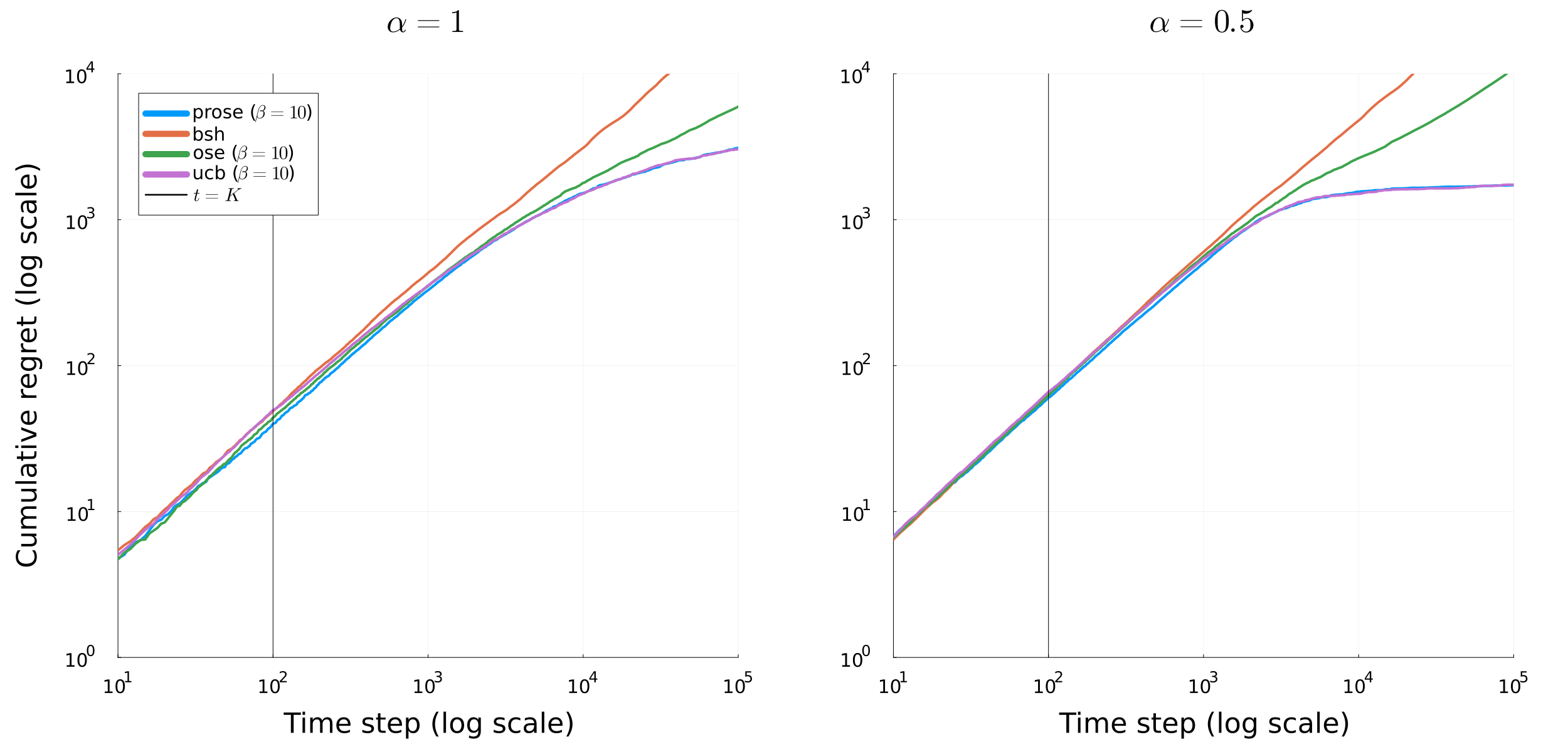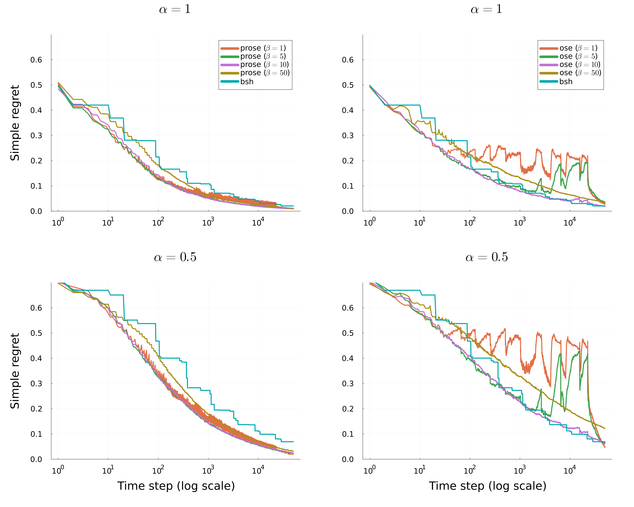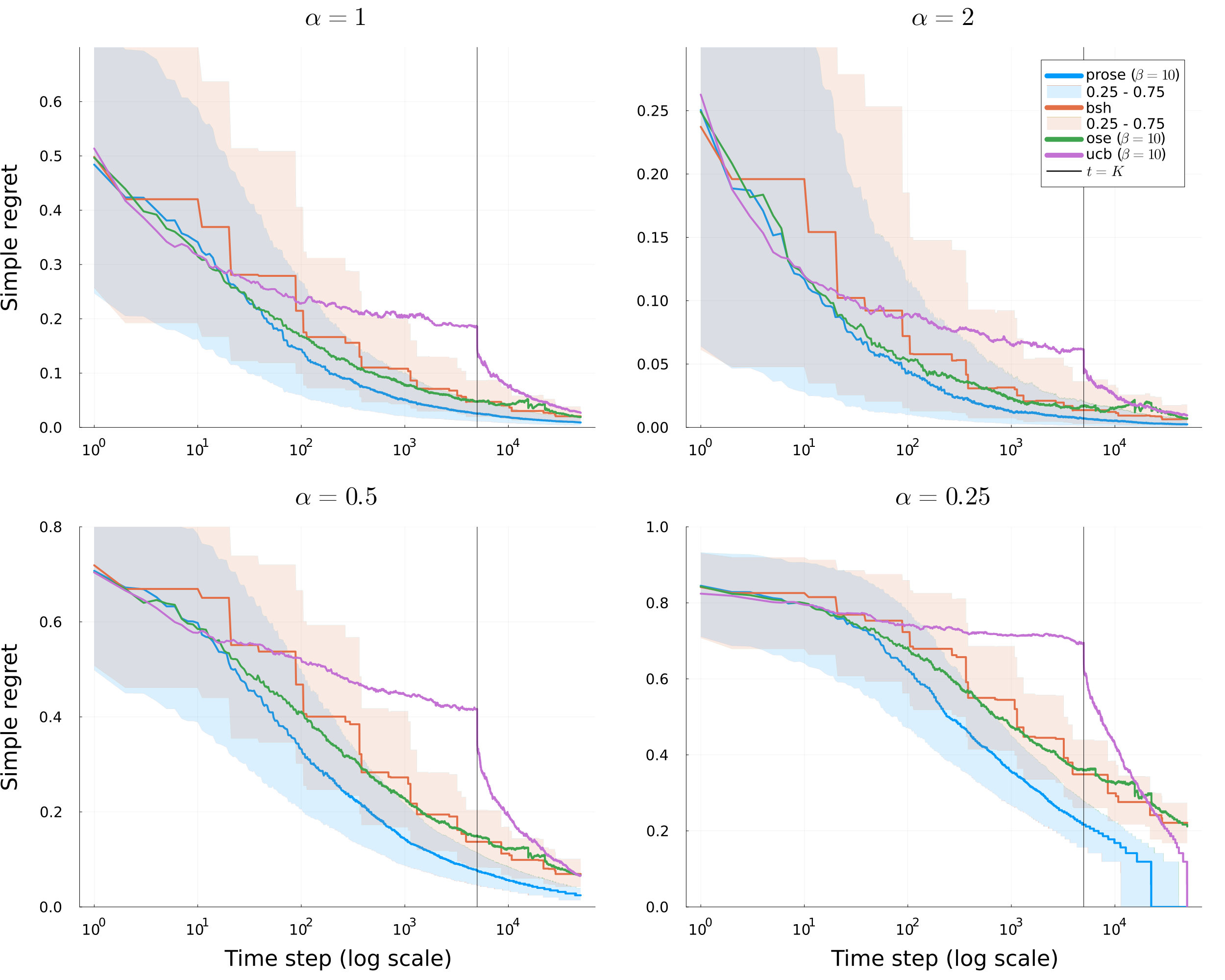 \(\to\) In fixed budget settings \(t \in \{1, \dots, T\}\), simple regret can be defined as \(\lambda_0 - \lambda_{\hat a_t}\)