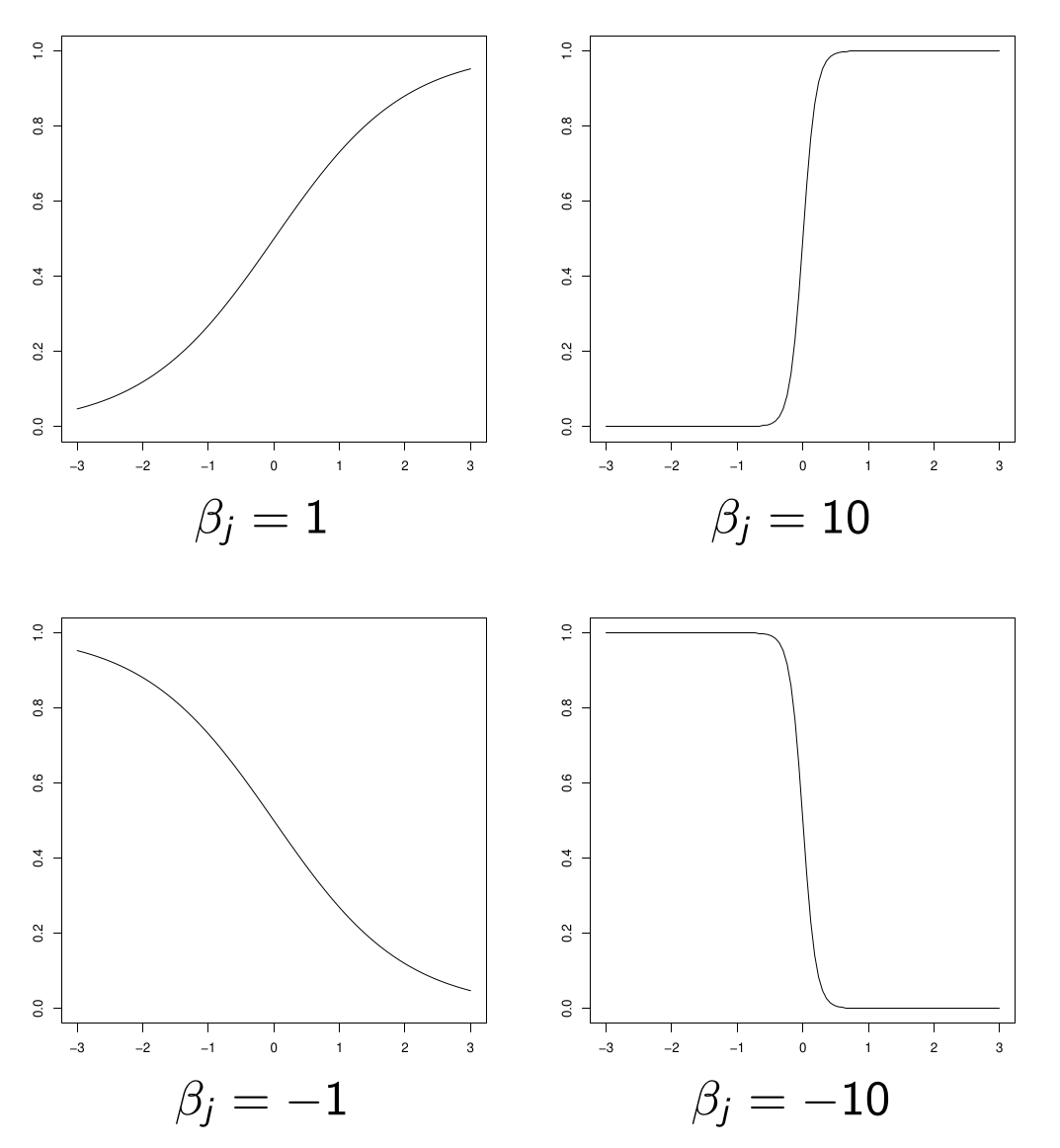 \(x^{(j)} \to p(x)\) is increasing if \(\beta_j > 0\), decreasing otherwise.